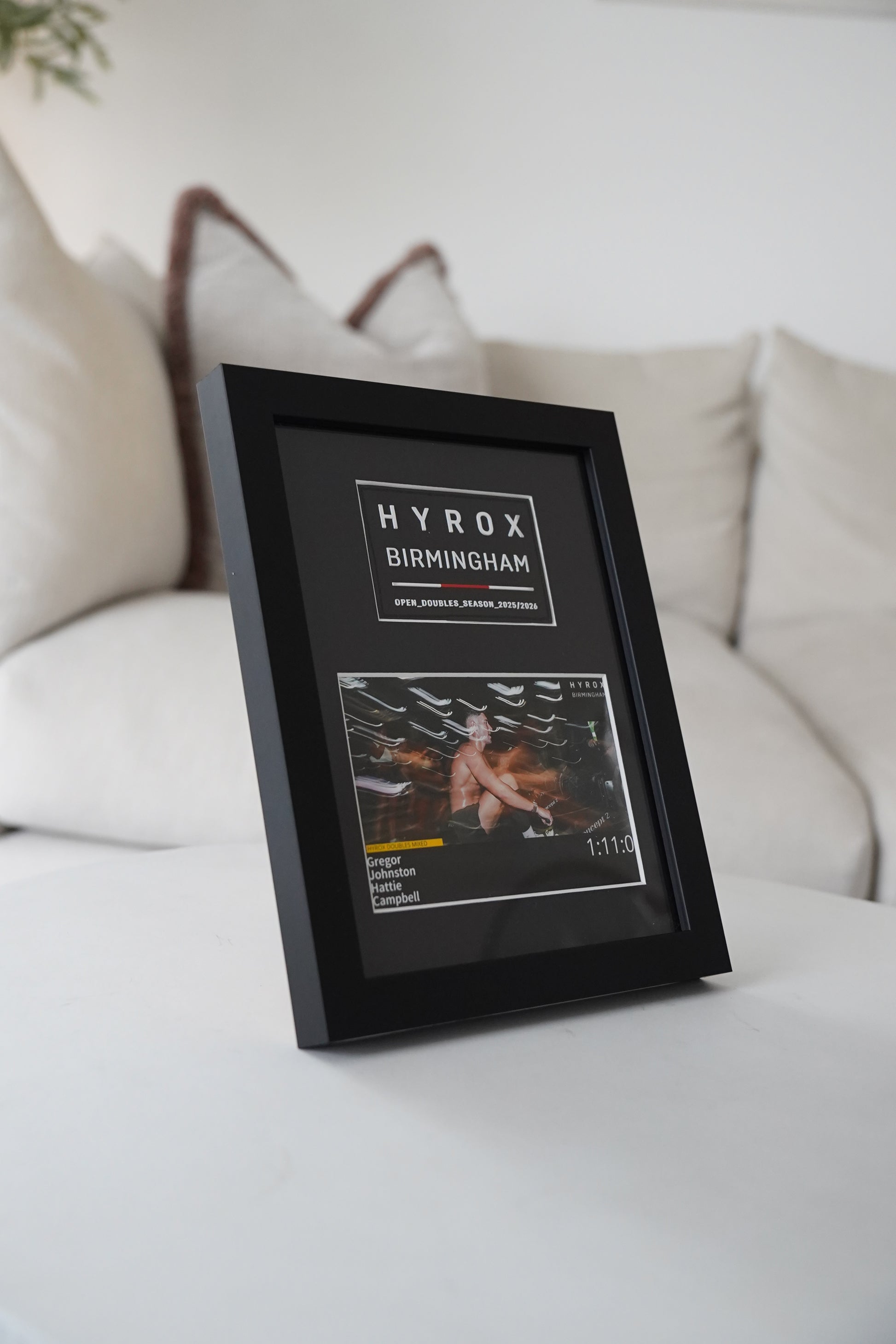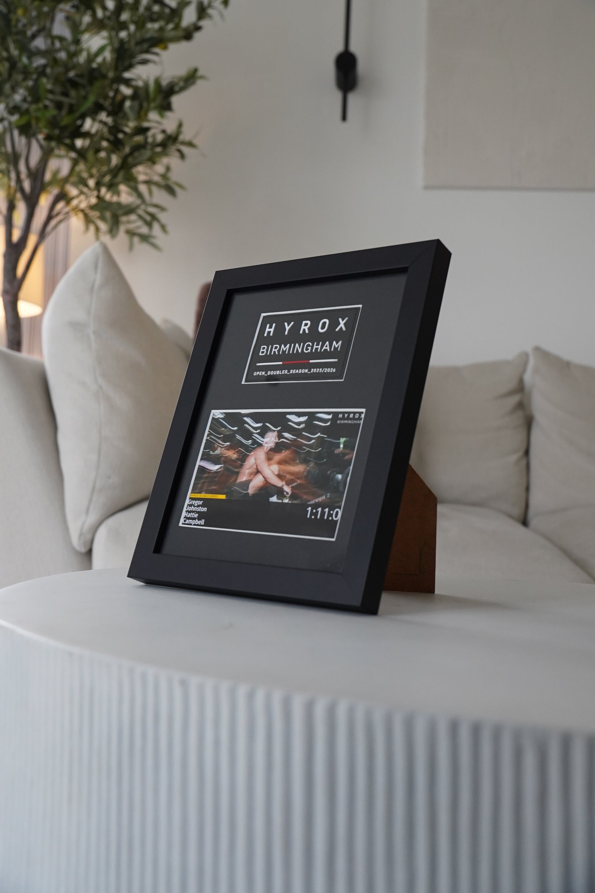 The perfect gift for a HYROX Athlete to celebrate their amazing achievement, or to display your own achievement which you should be so proud of! The ‘Finisher Frame’ allows you to display your favourite picture from the event as well as your finisher badge to create a memory that lasts forever!
